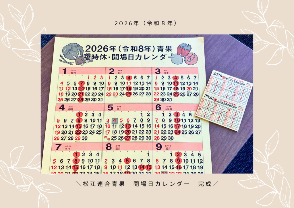 この度、弊社の2026年(令和8年)開場日カレンダーが完成いたしました。